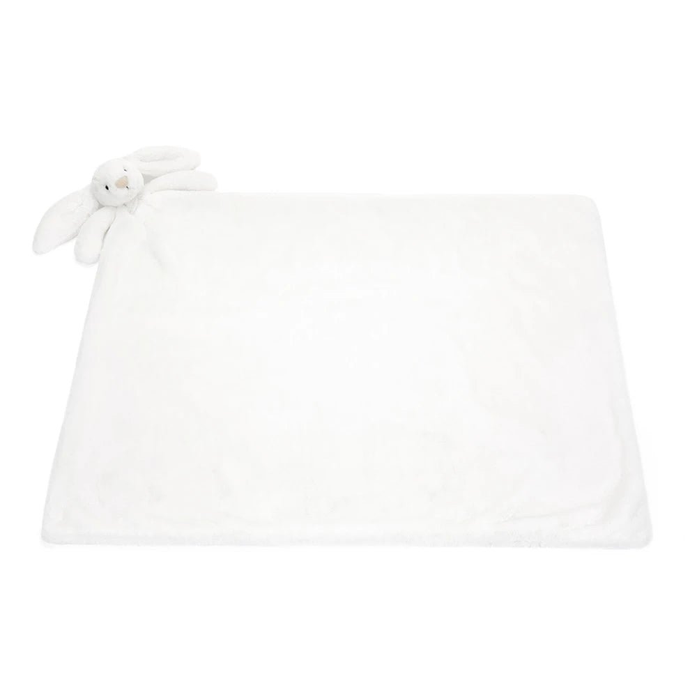 A luxurious newborn gift, the Bashful Luxe Luna Bunny Blankie is exquisitely soft in a pristine white fur. Featuring the head and paws of Luna Bunny in the corner of a silky soft blanket, it is rolled and wrapped with a grosgrain ribbon and elegantly presented in a satin-sheen gift box with gold foil detailing and a matching gift card.